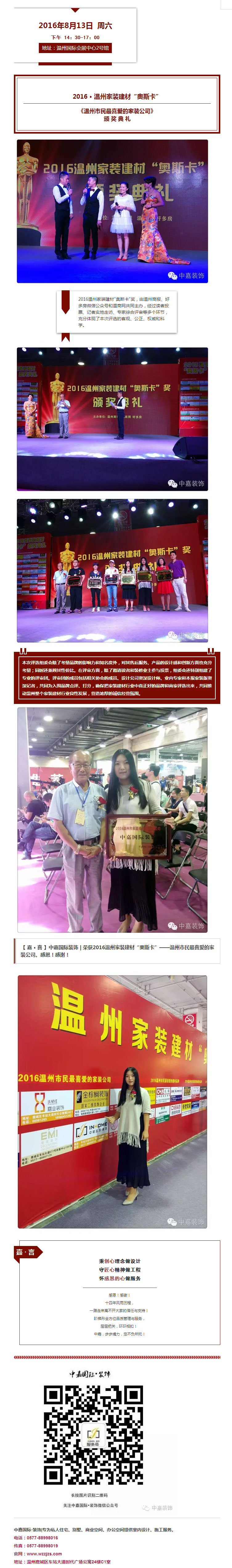 中嘉國際·裝飾 榮獲2016家裝建材“奧斯卡”— 溫州市民最喜愛的家裝公司
